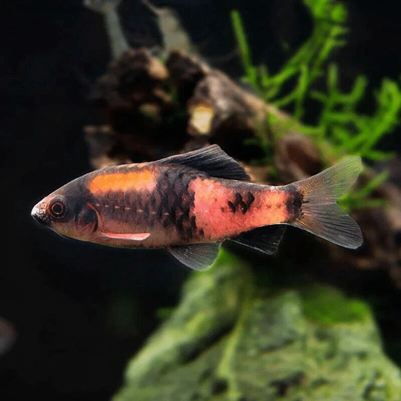 ⊕ Compatibilité : Poisson actif et généralement paisible. Compatible avec autres barbus calmes, tétras robustes, rasboras, corydoras et poissons communautaires rapides. Peut pincer légèrement les nageoires si maintenu en trop petit groupe. Éviter poissons lents ou à longues nageoires. Apprécie les aquariums plantés avec espace de nage et courant modéré.