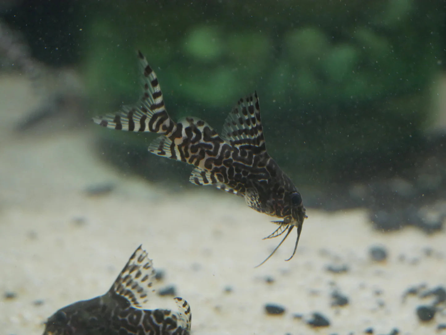 ⊕ Compatibilité : Paisible mais opportuniste. Compatible avec poissons de taille moyenne à grande, cichlidés africains modérés, grands tétras africains et poissons robustes. Peut manger de très petits poissons. Nécessite un aquarium spacieux, cachettes (tubes, roches), décor solide et filtration puissante. Actif surtout la nuit.